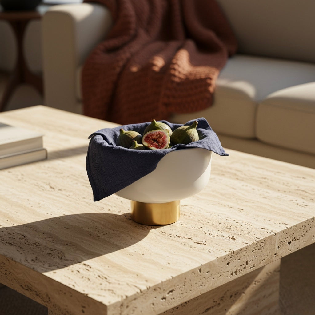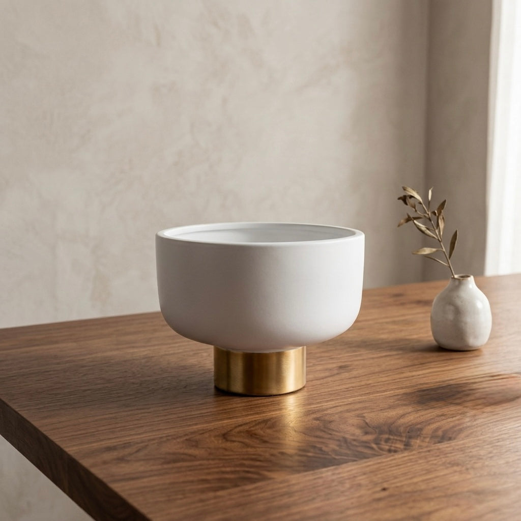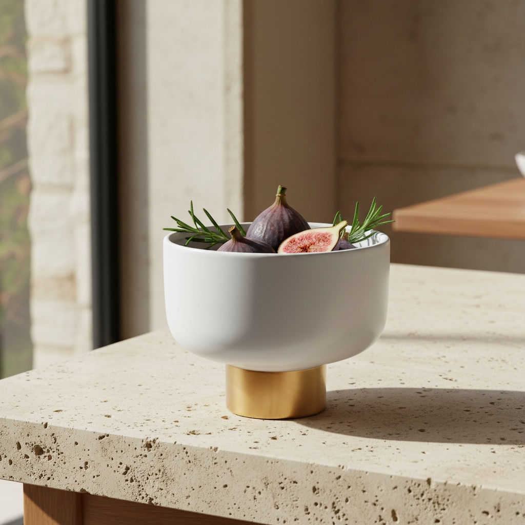 Elevate your decor with the Celeste Pedestal Bowl, a stunning blend of elegance and simplicity. Crafted from fine ceramic with a smooth matte finish, this bowl is mounted on a solid, gold-tone pedestal that adds a hint of luxury and sophistication. The Celeste Pedestal Bowl is perfect for displaying seasonal fruits, decorative accents, or standing alone as a sculptural centerpiece on your dining table, console, or kitchen island. Its clean lines and modern aesthetic make it an effortless addition to both contemporary and classic interiors, creating a timeless appeal that complements any setting.