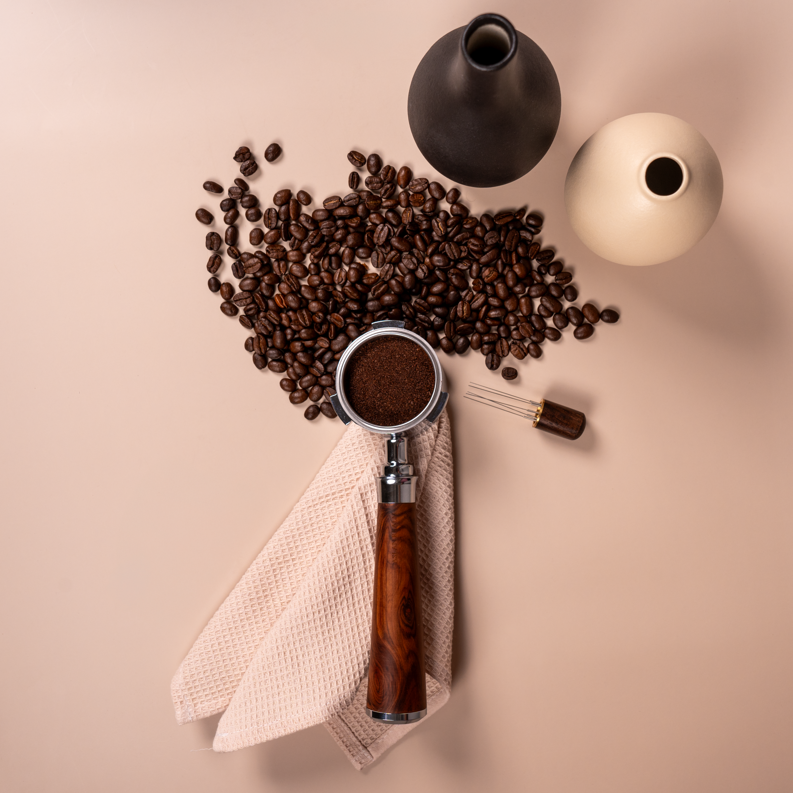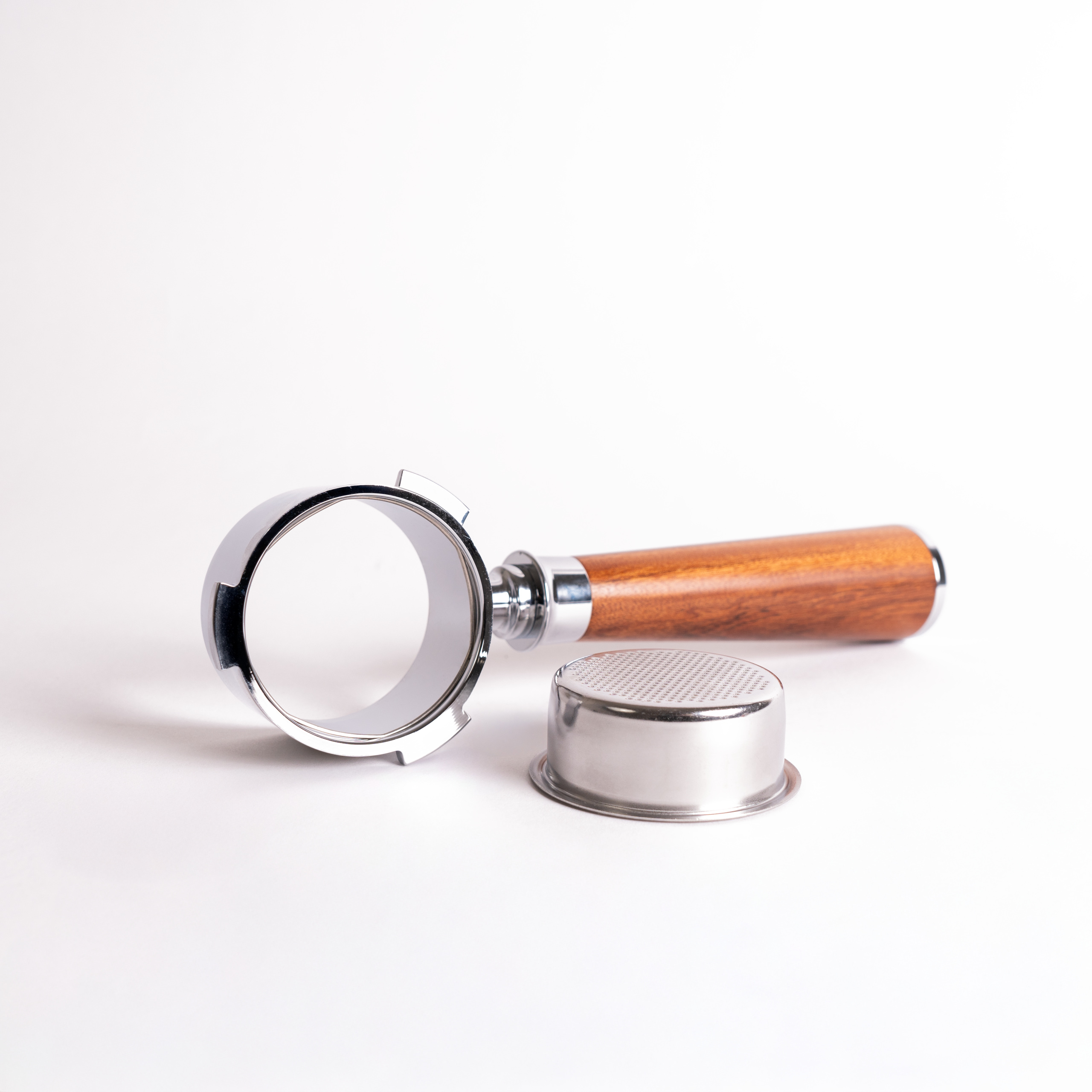 Enhance your espresso-making experience with this premium espresso portafilter, crafted with a sleek rosewood handle and a durable stainless steel filter. The combination of natural rosewood and polished stainless steel ensures both an ergonomic grip and a stylish addition to your coffee setup. Designed for baristas who value precision and aesthetics, this portafilter delivers consistent results while adding a touch of elegance to your daily brew ritual.
