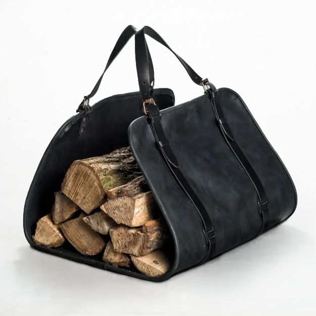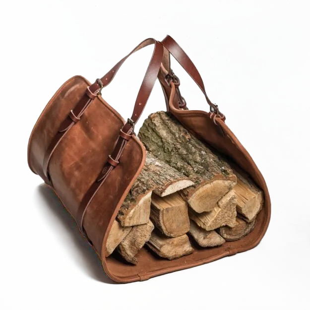 Crafted from crazy horse leather, these premium firewood carriers offer unmatched durability and style. Known for its toughness and unique aging process, crazy horse leather is a high-quality full-grain leather that develops a beautiful patina over time, enhancing its rustic charm. Available in both brown and black finishes, this carrier is designed to withstand heavy use while maintaining a sophisticated look. Its sturdy handles and reinforced construction ensure easy transport of logs, making it the perfect companion for fireside moments.