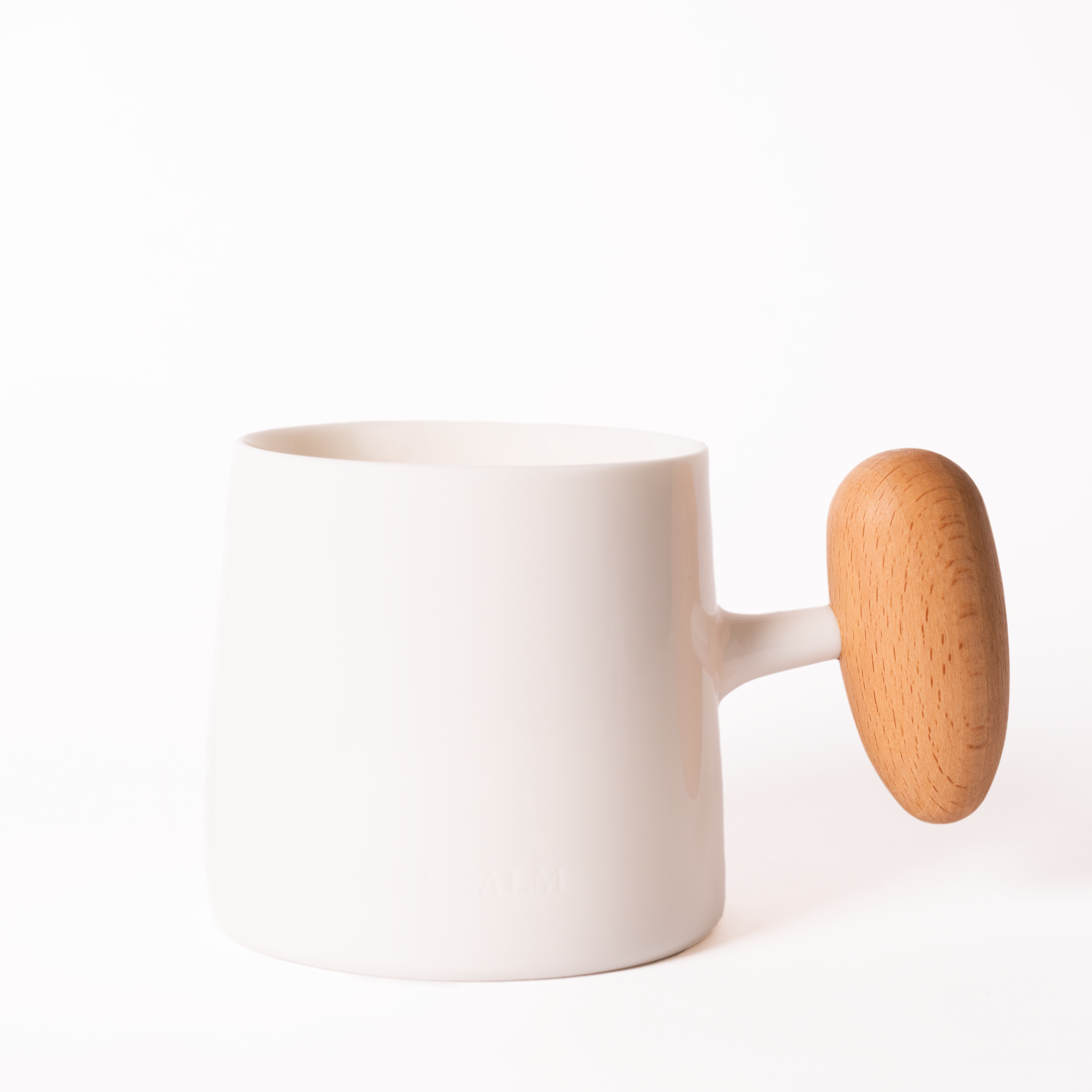 This high-quality ceramic coffee mug with a beech wood handle offers a blend of modern minimalism and natural elegance. Its clean lines and natural wood detail make it an ideal addition to any contemporary kitchen or office setting, seamlessly fitting within the Scandinavian design trend. The beech handle not only provides a comfortable grip but also adds a warm, organic touch, enhancing the mug’s overall aesthetic appeal. The use of beech, known for its subtle grain and durability, reinforces the mug’s premium feel without overwhelming the design, making it a stylish and functional choice for discerning coffee lovers.