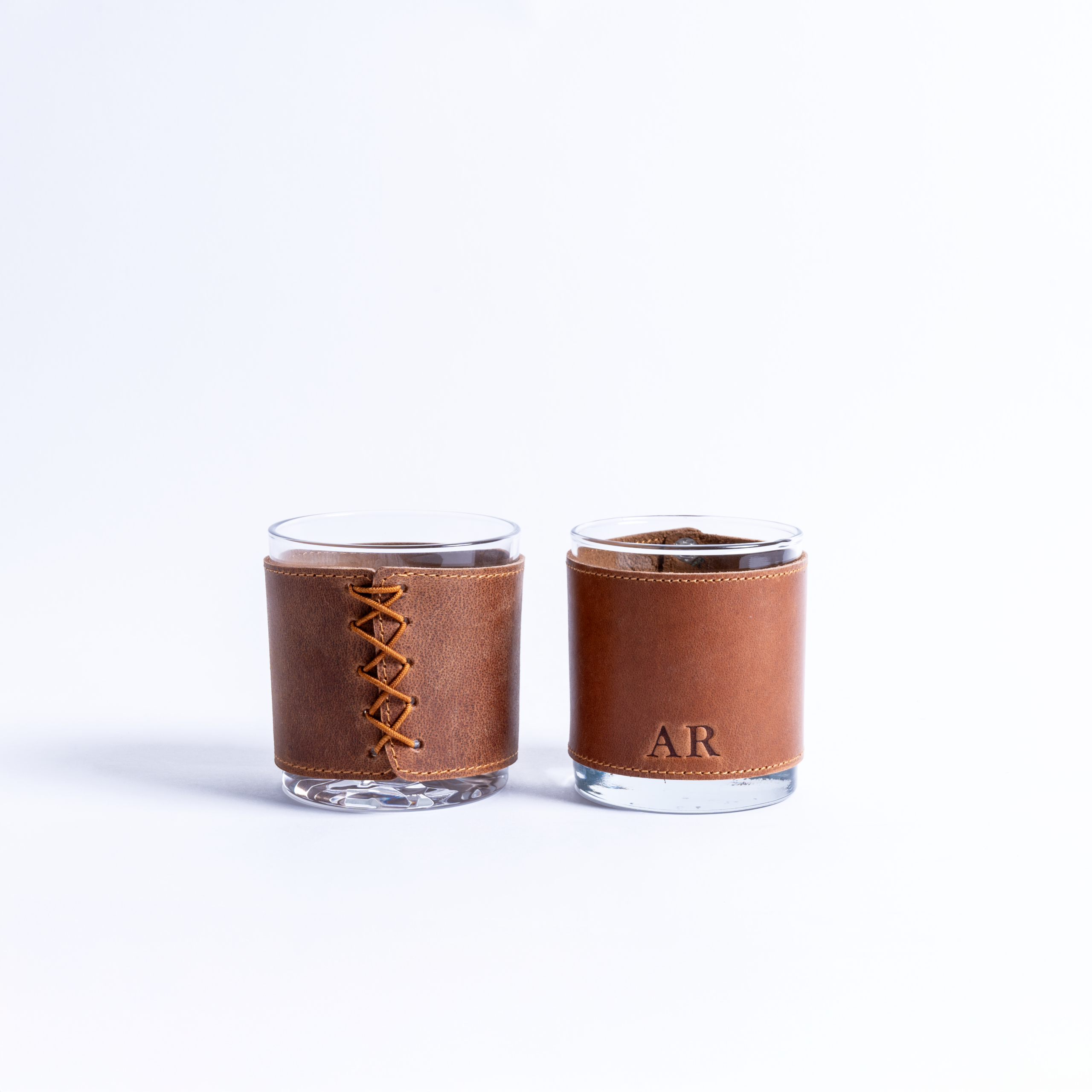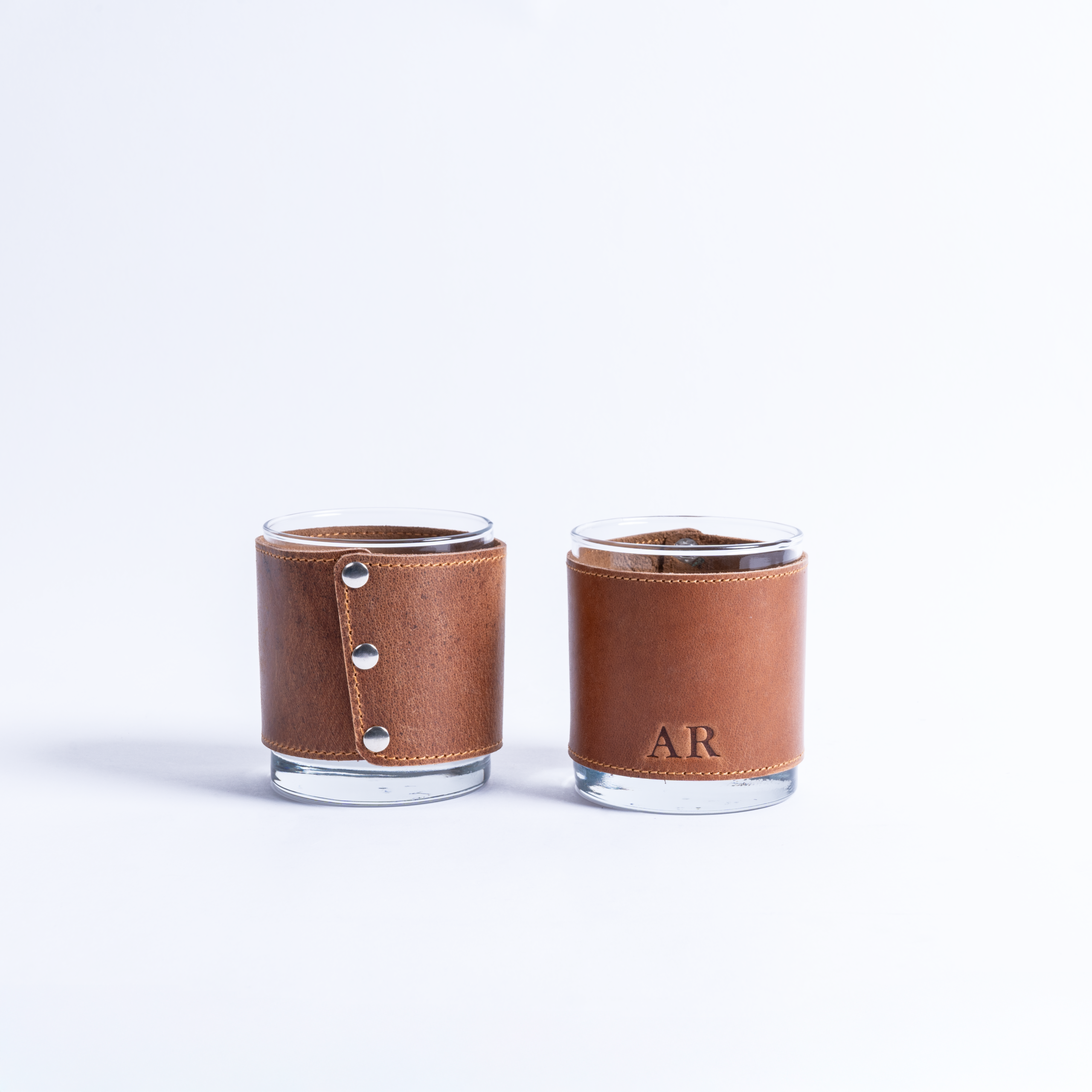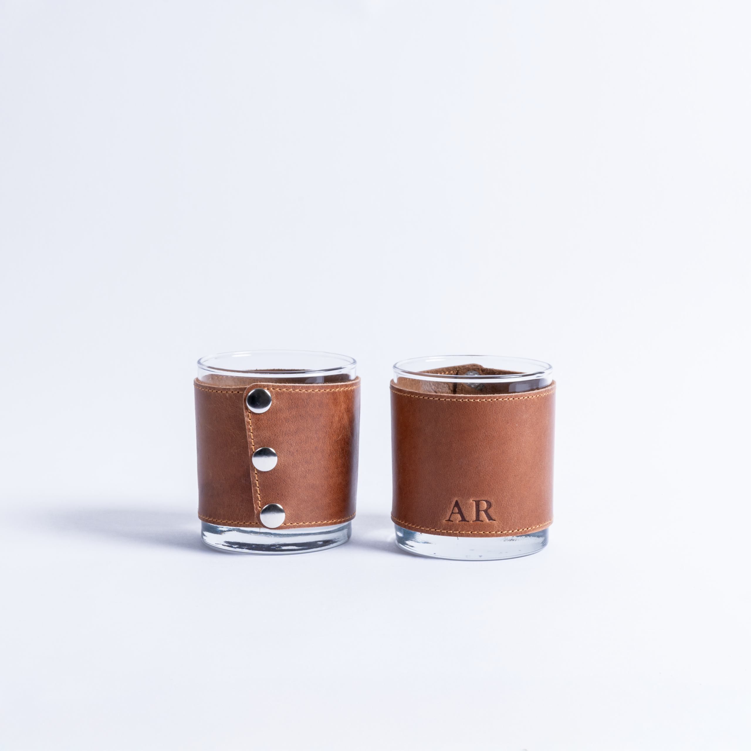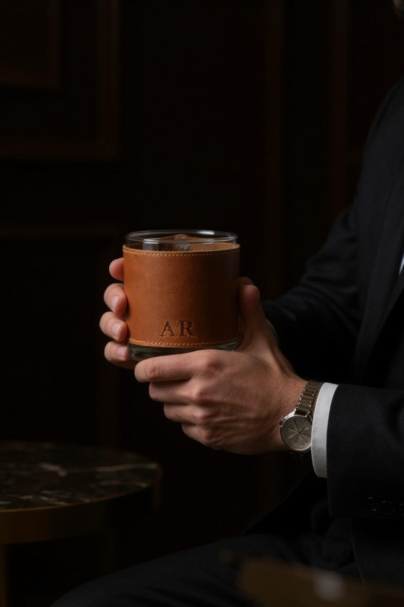 These luxurious leather sleeves are designed to perfectly wrap around your favorite rocks glass, adding a touch of sophistication to every sip. Crafted from premium full-grain leather, the sleeves not only provide a comfortable grip but also insulate your drink, keeping it cooler for longer. With their sleek design, rich natural leather patina that improves with age, and closure options of snap button, fixed rivet, or elastic lace, these sleeves turn an ordinary glass into an extraordinary drinking experience. Each sleeve comes with a rocks glass to complete the set, making it an ideal addition to any home bar or a thoughtful gift for any connoisseur.